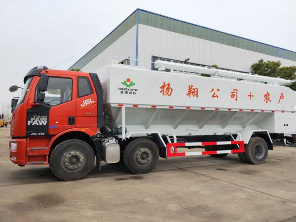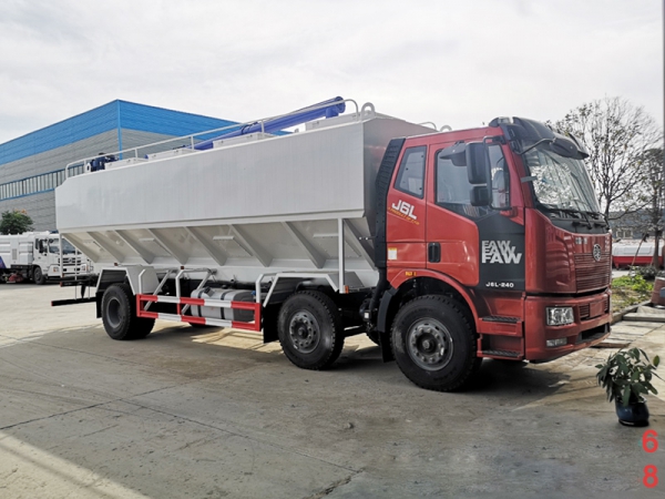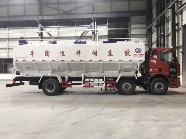 同時(shí)它也可用來運(yùn)輸某些無腐蝕性粉粒狀原料,如制藥廠粉料和糧庫周轉(zhuǎn)。散裝飼料車的飼料罐架設(shè)在卡車的底盤上,