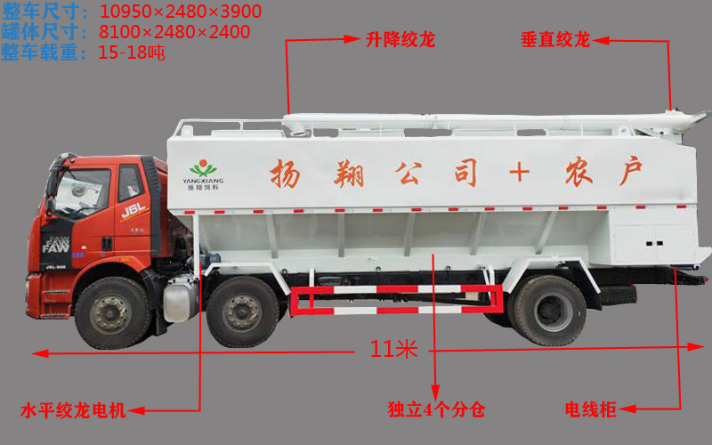 (3)料罐容積:30-34方,4個(gè)獨(dú)立倉,實(shí)載:豬料18噸,雞料21噸