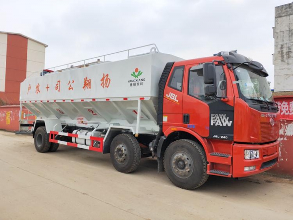 散裝飼料運(yùn)輸車主要用于從飼料廠向畜牧場(chǎng)養(yǎng)禽場(chǎng)及飼料加工用戶運(yùn)輸散裝飼料成品或飼料生產(chǎn)原糧,