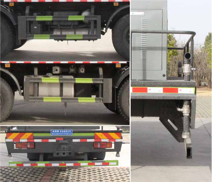 該車用途為抑塵降霾.主要裝置為罐體及噴霧裝置;罐體總?cè)萘?/span>:17.15立方米;罐體有效容積:16.33立方米;罐體外形尺寸(長(zhǎng)×長(zhǎng)軸×短軸)(mm):5500×2480×1750.側(cè)、后防護(hù)材料均為:Q235碳鋼,連接方式均為:螺栓連接,后部防護(hù)截面尺寸(mm):120×50,后部防護(hù)離地高度(mm):490.ABS的型號(hào)及生產(chǎn)廠家:3631010-C2000/東科克諾爾商用車制動(dòng)系統(tǒng)(十堰)有限公司,J ABS/焦作博瑞克控制技術(shù)有限公司.隨底盤選裝駕駛室,選裝噴霧裝置樣式,選裝擋泥板樣式.僅采用軸距(mm):1850+3200+1350改裝,整車長(zhǎng)度為12000mm時(shí),后伸為850mm. |