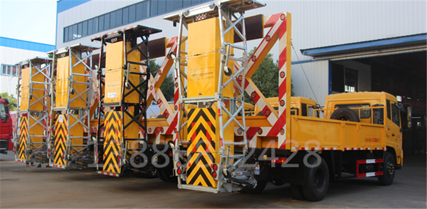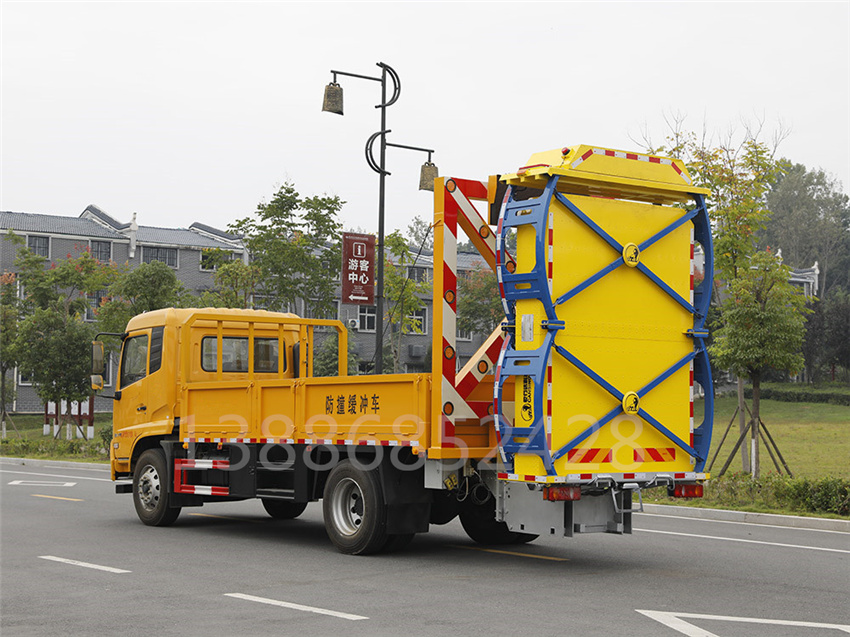 防撞緩沖車采用國(guó)六東風(fēng)天錦底盤。防撞緩沖模塊升降采用液壓控制,過(guò)程平穩(wěn)、安全、機(jī)械化作業(yè)程度高,操作方便。防撞緩沖模塊整體采用國(guó)產(chǎn)乾行達(dá)公司技術(shù)產(chǎn)品100E防撞緩沖模塊,太平洋保險(xiǎn)承保。適用于城市道路,郊區(qū)道路,高速公路,機(jī)場(chǎng)橋涵等場(chǎng)合。主要功用:置于道路施工作業(yè)人員和設(shè) 備后方,在發(fā)生追尾事故中充當(dāng)肇事車輛和施工作業(yè)人員或設(shè)備的緩沖區(qū)域,并且通過(guò)自身結(jié)構(gòu)變形吸收撞 擊能量,最大限度的降低施工人員或設(shè)備發(fā)生危險(xiǎn)的幾率,同時(shí)最大限度的降低肇事車輛及人員的危險(xiǎn)。