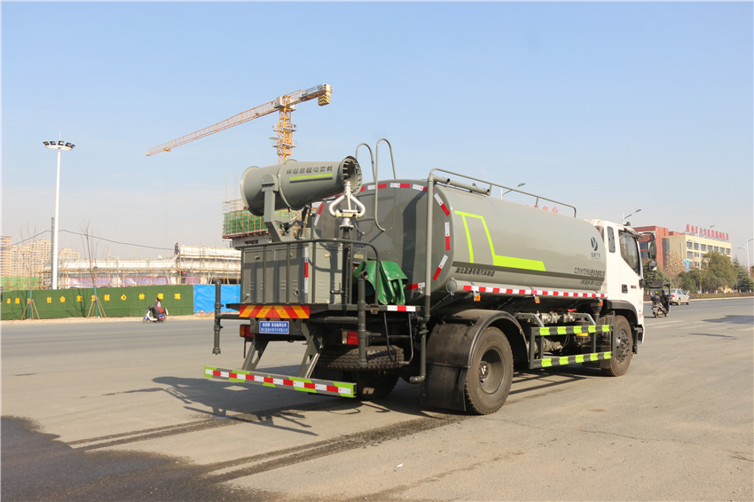 該車(chē)用途為抑塵降霾.主要裝置為罐體及噴霧裝置;罐體有效容積:9.8立方米;罐體外形尺寸(長(zhǎng)×長(zhǎng)軸×短軸)(mm):4000×2300×1540;側(cè)、后防護(hù)材料均為:Q235碳鋼,連接方式均為:螺栓連接,后部防護(hù)截面尺寸(mm):120×50,后部防護(hù)離地高度(mm):460;ABS型號(hào)為CM4XL-4S/4M,生產(chǎn)廠家為廣州瑞立科密汽車(chē)電子股份有限公司.隨底盤(pán)選裝駕駛室,選裝噴霧裝置樣式。 |