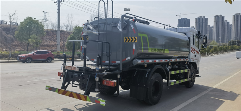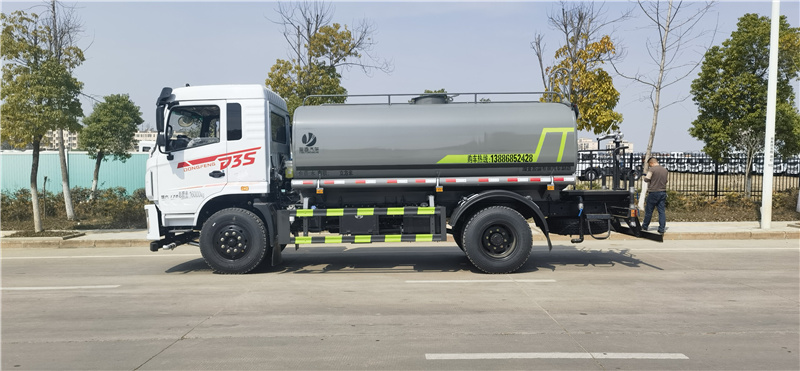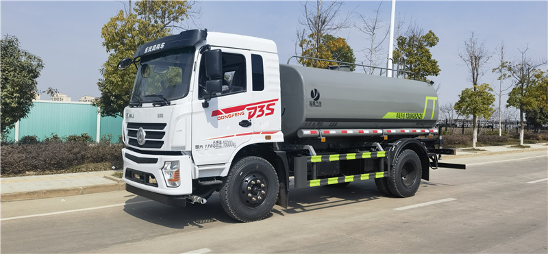 東風專底D3S灑水車_專底12方灑水車_專底玉柴170灑水車_湖北盈通專用汽車有限公司,選裝噴霧裝置樣式;ABS型號:3631010-C2000,ABS-E 4S/4M;ABS生產企業:東科克諾爾商用車制動系統(十堰)有限公司,威伯科汽車控制系統(中國)有限公司;隨底盤選裝駕駛室,選裝噴灑裝置;側、后防護材料均為:Q235碳鋼,連接方式均為:螺栓連接,后部防護截面尺寸(mm):120×50,后部防護離地高度(mm):450;罐體有效容積:9.64立方米;罐體外形尺寸(×長軸×短軸)(mm):4000×2300×1540,4200×2300×1450;該車主要用于城鄉園林綠化噴灑;主要裝置為水罐及噴灑裝置;選裝罐體頂部高位花灑裝置及罐體頂部箭頭燈裝置,選裝氣動球閥安裝位置,選裝車輛前部鴨嘴噴灑裝置,選裝油箱電瓶安裝位置.選裝罐體頂部方形罐口,選裝工具箱.選裝前部電子霧炮樣式.選裝前部不帶電子霧炮.當前部不帶電子霧炮時,車輛長度7750mm,7800mm,無前伸;當前部選裝電子霧炮時,車輛長度8250mm,8300mm,前伸500mm.后部作業燈僅在作業時開啟,車輛行駛過程中不可開啟.選裝尾部自流口裝置.