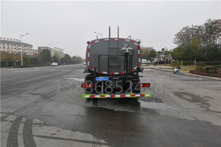 該車主要用于城鄉園林綠化,路面噴灑,除塵和降溫;主要裝置為水罐及噴灑裝置;隨底盤選裝駕駛室;罐體有效容積:7.58立方米;罐體外形尺寸(×長軸×短軸)(mm):4200×2000×1310;ABS型號/廠家:ABS型號及生產廠家為:3631010-C2000/東科克諾爾商用車制動系統(十堰)有限公司,J ABS/焦作博瑞克控制技術有限公司;側、后防護材料均為:Q235碳鋼,連接方式均為:螺栓連接,后部防護截面尺寸(mm):120×50,后部防護離地高度(mm):450.選裝噴灑裝置。