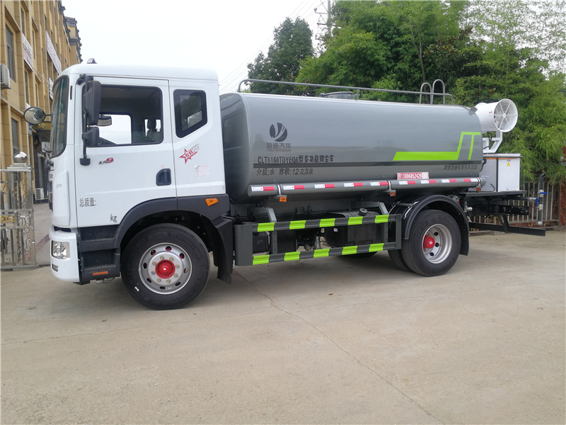 該車用途為抑塵降霾,主要裝置為罐體及噴霧裝置;隨底盤選裝駕駛室;罐體有效容積:12立方米;罐體外形尺寸(×長軸×短軸)(mm):4000×2300×1540,4200×2450×1700,4000×2450×1680;ABS型號:ABS系統生產廠家,型號 :焦作博瑞克控制技術有限公司,J ABS;襄陽東風隆誠機械有限責任公司,ABS/ASR-24V-4S/4M.側、后防護材料均為:Q235碳鋼,連接方式均為:螺栓連接,后部防護截面尺寸(mm):120×50,后部防護離地高度(mm):460.選裝附件位置,選裝噴霧裝置樣式,選裝油箱出口位置。