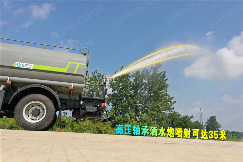 灑性能特點:前沖(噴)后灑,帶側噴,罐體后帶工作平臺,平臺上安裝綠化灑水炮,灑水炮可360旋轉,可連續調成直沖狀、大雨、小雨、毛毛雨,帶安全護欄,配備全國質量評比首名的杭州威龍大功率  灑水泵,泵可自吸自排,安裝過濾網,帶消防接口,可通過消防栓進水,帶自流閥,隨車選裝20米綠化卷盤,可噴灑農藥。 泵及管路系統安裝完畢,應經壓力為泵工作壓力1.2倍的壓力試驗,歷時3分鐘,以明各處無泄漏(進口有真空表時應關閉該路或卸下真空表),試運轉時,泵內應加注滿液體,以防止機械密封干磨擦造成損,泵送油料時,必須加接地線,將靜電導入地下