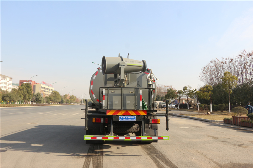 該車用途為抑塵降霾.主要裝置為罐體及噴霧裝置;罐體有效容積:9.8立方米;罐體外形尺寸(×長軸×短軸)(mm):4000×2300×1540;側、后防護材料均為:Q235碳鋼,連接方式均為:螺栓連接,后部防護截面尺寸(mm):120×50,后部防護離地高度(mm):460;ABS型號為CM4XL-4S/4M,生產廠家為廣州瑞立科密汽車電子股份有限公司.隨底盤選裝駕駛室,選裝噴霧裝置樣式。