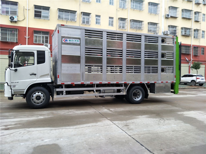 畜禽運輸車是我公司在借鑒國內外產品的基礎上,結合用戶實際需求新研發的一款運輸仔豬、生豬、雞苗等畜禽的專用功能較強的運輸車輛,是我公司傾力打造的一款專門面向活禽、牲畜運輸市場的一款高端運輸車,該款運輸車旨在增強活禽、牲畜在運輸過程中的舒適度、減少死亡率,提高運輸效率,該車配備設施完善、自動化程度高。廂式畜禽運輸車可用于成品豬、生豬、豬仔、雞苗跨省運輸,全程無泄漏,有糞液收集系統箱體采用全鋁合金型材制作,質量輕、抗腐蝕性強。箱體中層安裝保溫隔板,頂部采用玻璃鋼,有效避免高溫傳導,控制箱體內部溫度。車廂內部采用全液壓可調整分層結構,二層、三層、四層16欄(根據需求選擇)飲水系統,側推拉通風滑窗,帶電子排風扇,視頻監控,溫度顯示監控,中間有隔欄,每層約承重300頭仔豬的重量。車廂后部選裝垂直液壓升降尾板,更實用!