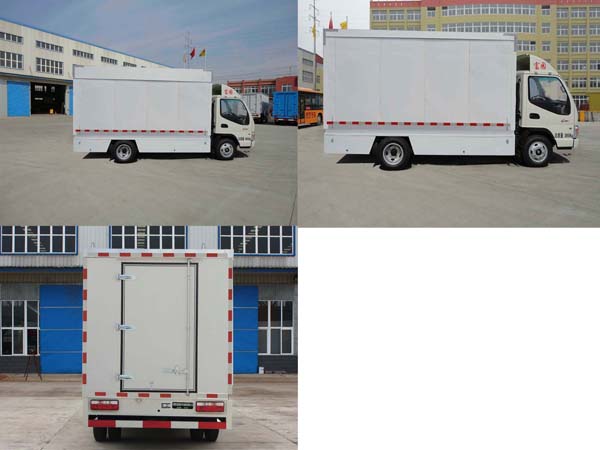該車是用于廣告宣傳的專用車輛.該車兩側為LED屏,側面選裝滾軸裝置,LED單色屏;后部選裝LED屏及通風口.隨底盤選裝隨底盤選裝排半駕駛室,前圍面板,進氣格柵,前保險杠,組合燈具,前霧燈,后視鏡的駕駛室;.選裝后門為單開門.防護材料:Q235碳鋼,該車側后包圍裝置已經符合車輛側后防護尺寸標準要求,側包圍距地350mm,后包圍距地450mm.