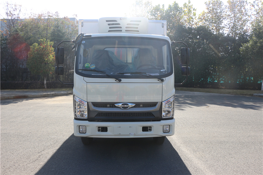 福田H2冷藏車采用全柴115馬力(Q23-115C60發動機,萬里揚5變速箱,NPR沖壓后橋(帶制動襯片磨損報警),7.00R16輪胎,斷氣剎、單排翻轉、車載無線服務控制器(T-BOX)、ABS、離合助力、動轉,