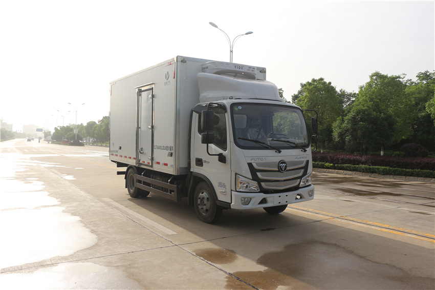 奧鈴速運冷藏車采用福田康明斯131/150/156馬力(F2.8NS6B131/F2.8NS6B150/F2.8NS6B156發動機,采埃付5變速箱,NPR沖壓后橋(帶制動襯片磨損報警),7.00R16輪胎,斷氣剎、單排翻轉、車載無線服務控制器(T-BOX)、ABS、離合助力、動轉,
