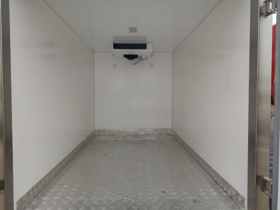 冷藏車廂體:采用國標(biāo)A級(jí)聚氨酯保溫材料,厚度為8厘米,廂體內(nèi)外采用玻璃鋼材質(zhì)全包裹。不銹鋼鎖件。包角、包邊鋁合金型材。底盤采用高強(qiáng)度花紋鋁板定制。可選裝肉鉤導(dǎo)軌,和底部通風(fēng)槽