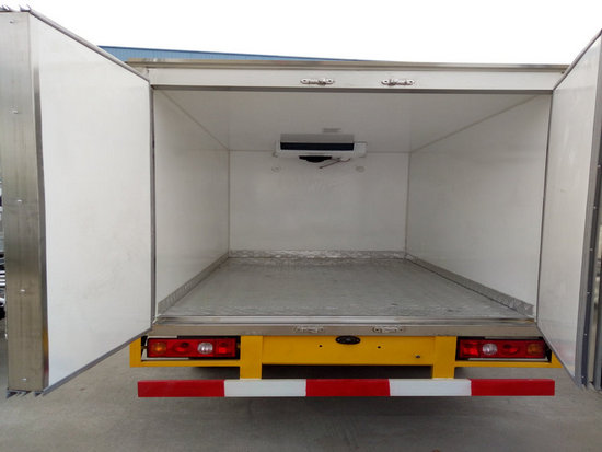 冷藏車廂體:采用國標(biāo)A級(jí)聚氨酯保溫材料,厚度為8厘米,廂體內(nèi)外采用玻璃鋼材質(zhì)全包裹。不銹鋼鎖件。包角、包邊鋁合金型材。底盤采用高強(qiáng)度花紋鋁板定制。可選裝肉鉤導(dǎo)軌,和底部通風(fēng)槽。