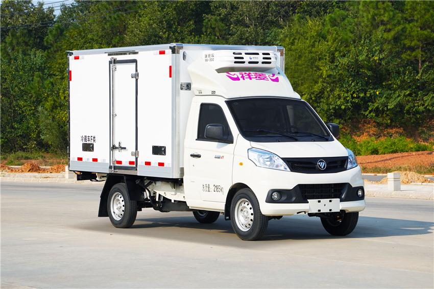 福田祥菱M1冷藏車采用國六汽油東安115馬力(DAM15KR發動機,5變速箱,2750軸距,高配,原廠空調,后雙胎,5檔變速箱,175R14后雙胎,122后橋,ABS,電動助力轉向,