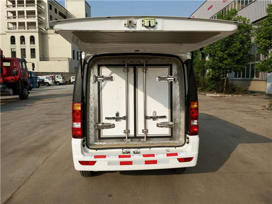 冷藏車廂體:采用國標(biāo)A級(jí)聚氨酯保溫材料,厚度為8厘米,廂體內(nèi)外采用玻璃鋼材質(zhì)全包裹。不銹鋼鎖件。包角、包邊鋁合金型材。底盤采用高強(qiáng)度花紋鋁板定制。可選裝肉鉤導(dǎo)軌,和底部通風(fēng)槽