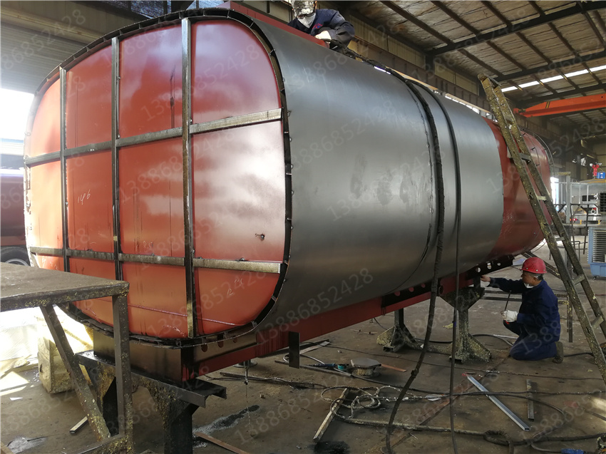 3. 保層溫的制作是在水罐外部另外焊接10mm厚的支撐骨架,然后用保溫材料將骨架內(nèi)部填充滿,**在骨架外蒙上一層外皮。 保溫層外表鐵皮采用8mm厚高強度耐磨板,可選擇使用不銹鋼分鏡面8K或磨砂板
