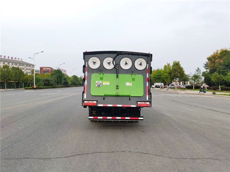 吸塵車垃圾箱上端裝有過濾系統(tǒng)和除塵 裝置,過濾系統(tǒng)為八個(gè)濾筒分成四組固定在 出箱體風(fēng)口前端,采用國(guó)外進(jìn)口覆膜定制濾 芯,橫列布置,更有利于灰塵過濾處理,使 粉塵有進(jìn)無出,無二次揚(yáng)塵。垃圾箱內(nèi)部設(shè) 有分隔倉,垃圾分類存放