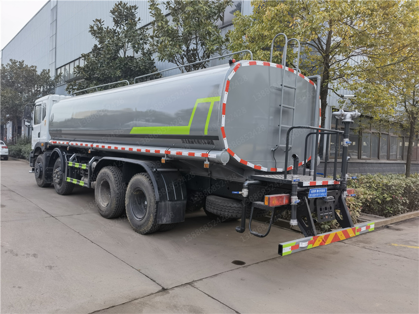 華神25方灑水車,東風華神灑水車,國六25方灑水車,前四后八灑水車價格,該車主要用于城鄉園林綠化噴灑;主要裝置為罐體及噴灑裝置:罐體總容量:20.1立方米;罐體有效容積:19.14立方米;罐體外形尺寸(×長軸×短軸)(mm):7300×2450×1650;側、后防護材料均為:Q235碳鋼,連接方式均為:螺栓連接,后部防護截面尺寸(mm):120×50,后部防護離地高度(mm):490;ABS的型號及生產廠家:3631010-C2000/東科克諾爾商用車制動系統(十堰)有限公司,J ABS/焦作博瑞克控制技術有限公司.隨底盤選裝駕駛室,選裝噴霧裝置樣式,選裝箭頭指示燈裝置,選裝自動球閥安裝位置,選裝高位花灑管道樣式,選裝水炮支架位置,選裝擋泥板樣式,僅采用軸距(mm):1850+3200+1350改裝.