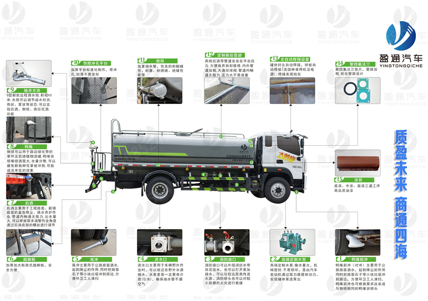 該車主要用于城鄉(xiāng)園林綠化噴灑作業(yè).主要裝置為罐體及噴灑裝置.罐體總?cè)萘?/span>:20.45立方米;罐體有效容積:19.47立方米;罐體外形尺寸(長×長軸×短軸)(mm):7300×2450×1650.僅采用軸距(mm):1850+3200+1350改裝.側(cè)、后防護(hù)材料均為:Q235碳鋼,連接方式均為:螺栓連接,后部防護(hù)截面尺寸(mm):120×50,后部防護(hù)離地高度(mm):490.ABS生產(chǎn)廠家:東科克諾爾商用車制動系統(tǒng)(十堰)有限公司,浙江萬安科技股份有限公司,型號:3631010-C2000,VIE ABS-Ⅱ.選裝前部不帶電子霧炮.選裝電子炮裝置樣式.當(dāng)前部選裝電子炮裝置時,前伸為500mm,整車長度為11230mm,11750mm. |