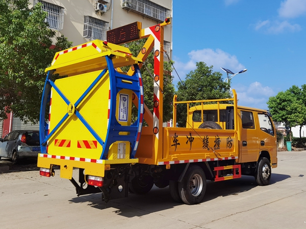 小多利卡D6防撞緩沖車采用東風小多利卡底盤。防撞緩沖模塊升降采用液壓控制,過程平穩、安全、機械化作業程度高,操作方便。防撞緩沖模塊整體引進美國Energy Absorption Systems公司技術產品Alpha 70K TMA™防撞緩沖模塊。