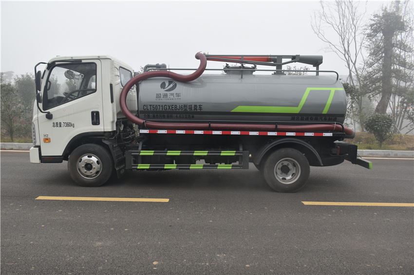 該車用于糞便,污液的收集和清理作業,主要裝置為罐體和吸糞裝置;罐體有效容積:4.63立方米;罐體外形尺寸(×長軸×短軸)(mm):3500×1650×1200;隨底盤選裝駕駛室;側、后防護材料均為:Q235碳鋼,連接方式均為:螺栓連接,后部防護截面尺寸(mm):120×50,后部防護離地高度(mm):420;ABS系統控制器型號為CM4XL-4S/4M,ABS系統控制器生產企業為廣州瑞立科密汽車電子股份有限公司.選裝出口樣式。選裝油箱出口位置。