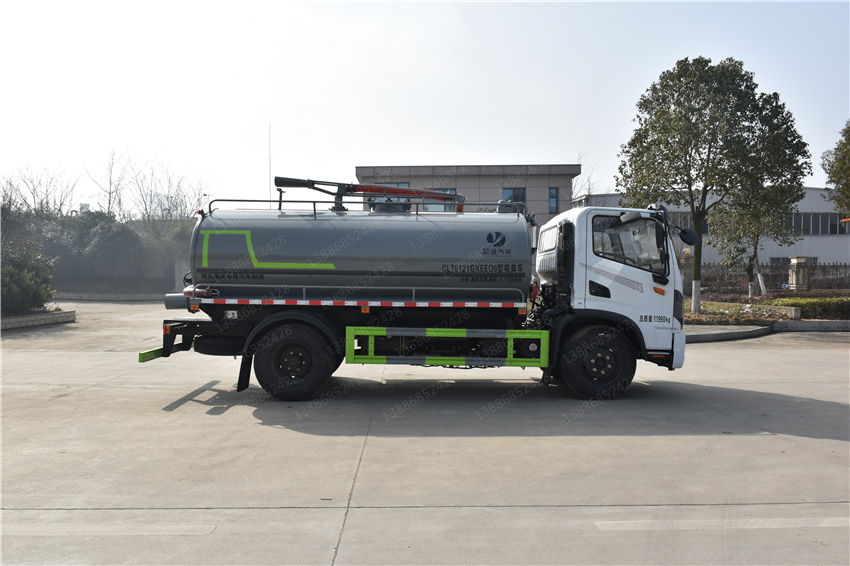 隨底選裝底盤布置。該車用于糞便,污液的收集和清理作業,主要裝置為罐體和吸糞裝置;隨底盤選裝駕駛室;罐體總容量:8.13立方米;罐體有效容積:7.74立方米;罐體外形尺寸(×長軸×短軸)(mm):4200×2000×1400;ABS型號/廠家:ABS型號及生產廠家為:3631010-C2000/東科克諾爾商用車制動系統(十堰)有限公司,J ABS/焦作博瑞克控制技術有限公司;側、后防護材料均為:Q235碳鋼,連接方式均為:螺栓連接,后部防護截面尺寸(mm):120×50,后部防護離地高度(mm):470.