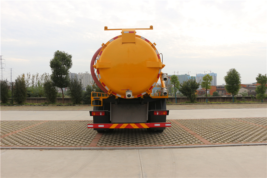 隨底盤選裝駕駛室,選裝側面及后部樣式;罐體總容量:11.03立方米,罐體有效容積:10.5立方米,罐體外形尺寸(直段長×直徑)(mm)4700×1850;整車長度/前懸/軸距/后懸對應關系(mm):8150/1430(1400)/4700/2020(2050),8150/1430(1400)/4500/2220(2250);/后防護材料均為:Q235碳鋼,連接方式均為:螺栓連接,后部防護截面尺寸(mm):120×50,后部防護離地高度(mm):450;ABS型號/生產(chǎn)廠家:3631010-C2000/東科克諾爾商用車制動系統(tǒng)(十堰)有限公司,ABS 8/東科克諾爾商用車制動系統(tǒng)(十堰)有限公司, 4460046450/威伯科汽車控制系統(tǒng)(中國)有限公司,J ABS/焦作博瑞克控制技術有限公司;該車主要用于吸除水溝、下水道污濁物;主要裝置為貯污罐及吸污裝置。卸料方式:舉升后卸。
