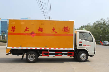 | 選裝新造型的前面罩。選裝不開門廂體。廂體頂部封閉,不可開啟:側/后防護裝置材料材質為Q235A碳鋼,側防護與副梁,后防護裝置與車架均采用焊接連接,后防護斷面尺寸(寬贅?50?20(mm),離地高度為450mm.運輸品名:炸藥,雷管,煙花爆竹等,類項號:1.1B,1.1D,1.1G,1.2G,1.3G,1.4G 等;安裝帶衛星定位功能的行駛記錄儀;配裝限速裝置,最高時速80km/h。僅采用有前盤制動器和安裝ABS的底盤。僅采用子午線輪胎。ABS系統型號及生產廠:36BG13-30010/東風電子科技股份有限公司汽車制動系統公司。僅采用排氣管前置的底盤。僅采用4B28ATCI,CY4102-CE4D,D28D11-4DA,SD4M824U,YC4FA115-40,YN38CRD2,ZD30D13-4N發動機,對應油耗值分別為13.28,12.93,12.88,13.11,12.89,12.96,12.82。 |